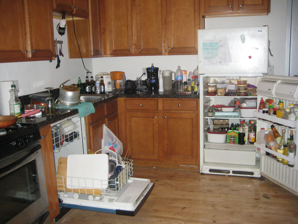 Quant au frigo, je suis incapable de lire la plupart des étiquettes mais je pense qu'en cas d'inventaire, le tiers de son contenu ne serait pas revendiqué car probablement acheté par des sous-locataires enfuis depuis plusieurs mois.